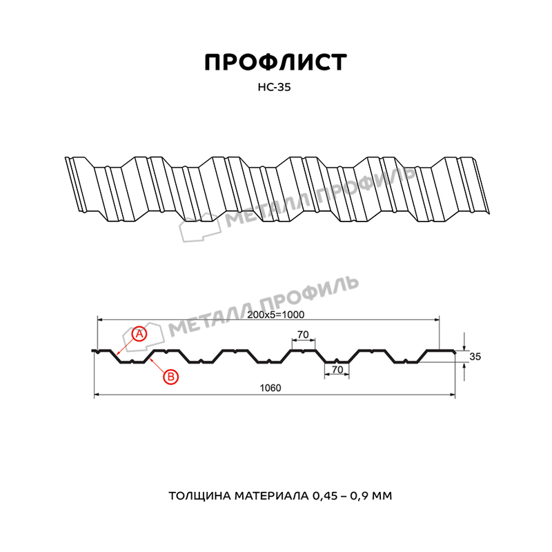 Многоцелевой и выгодный материал с симметричным профилем. Маркировка НС значит, что профнастил является и «несущим», и «стеновым». Он пользуется спросом как для гражданского строительства, так и для индустриальных объектов. Из профилированного листа с высотой волны в 35 мм возводятся строения очень разного назначения: ограждения придомовых и общественных территорий, обустройство кровли, каркасные здания ( склады, торговые центры, цеха ), быстровозводимые сооружения ( навесы, павильоны ). Отличную несущую способность НС-35 придают дополнительные канавки, которые расположены на лицевой и внутренней сторонах профлиста. Полезная ширина материала достигает 1000 мм при габаритной ширине 1060 мм, таким образом, при установке этого профнастила в боковой замок скроется 60 мм. Толщина металлопроката может быть выбрана в диапазоне от 0,5 до 0,9 мм – это влияет не только на механическую стойкость стройматериала, но и его тяжесть. Полимерно-защитный слой из ассортимента Компани Металл Профиль добавит профлисту улучшенную стойкость к коррозии и солнечному излучению.